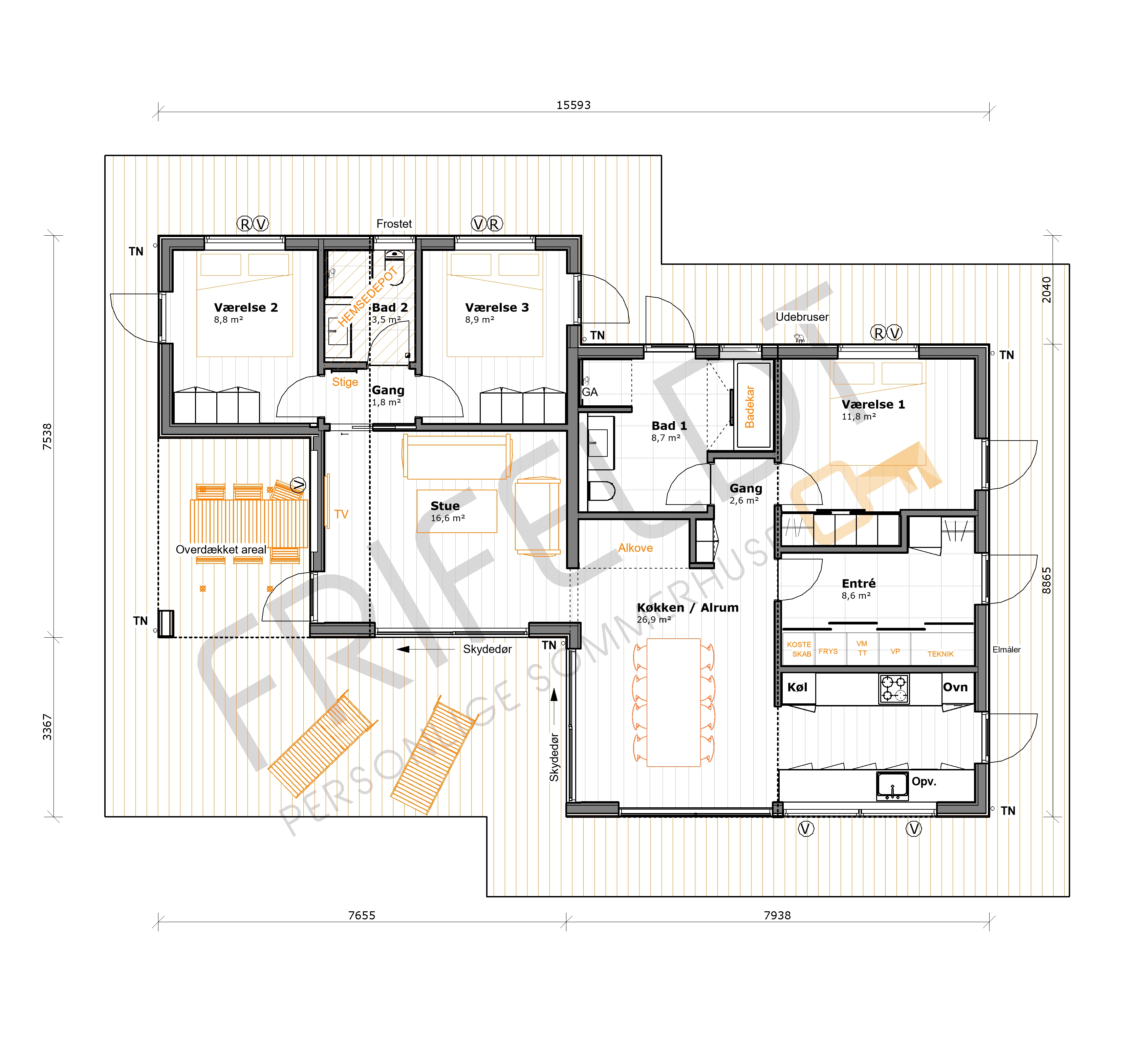 Du kan vælge grundplanerne som de er, eller få skabt den grundplan der matcher dine ønsker og behov, ligesom ved huset her.