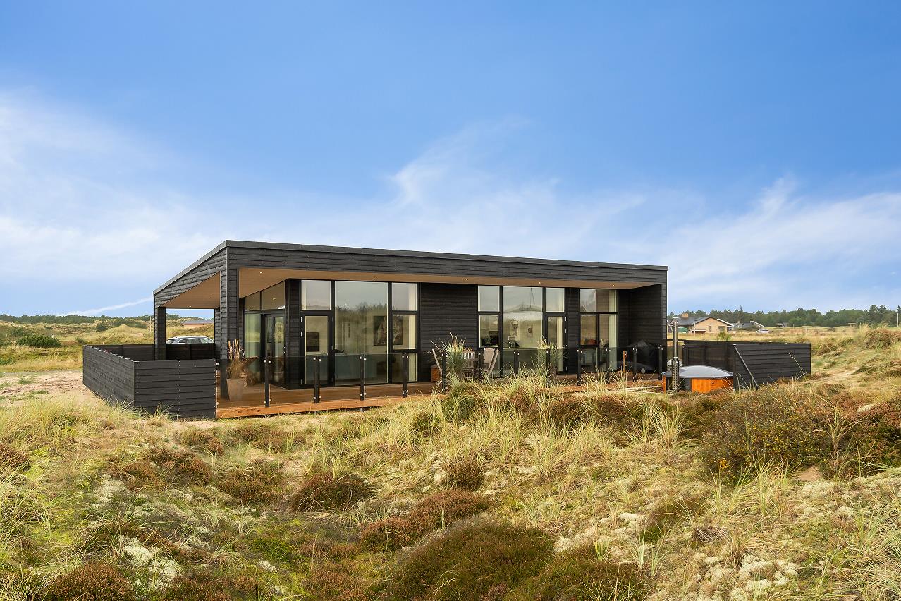 Den moderne byggestil med store vinduer i facaden fremstår arkitektonisk moderne i landskabet.